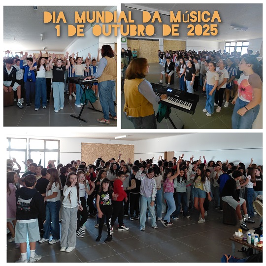 No dia 1 de outubro de 2025, as turmas do 5.º e 6.º ano da Escola Básica e Secundária de Pinheiro assinalaram o Dia Mundial da Música com uma atividade especial, realizada no átrio entre os pavilhões A e B.